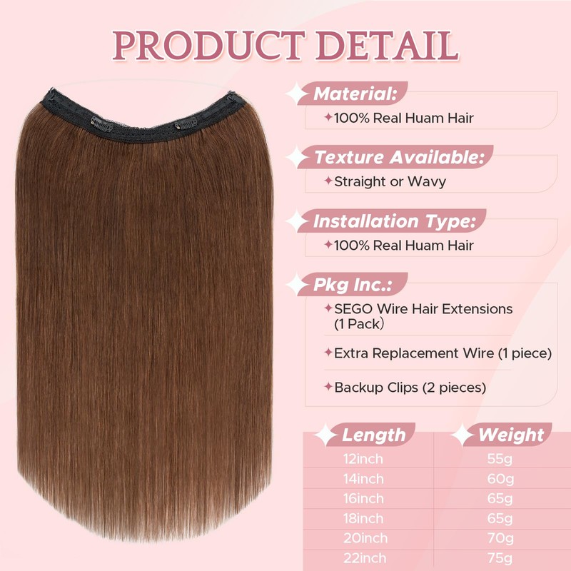 - 【100% High Quality Real Human Hair】 SEGO Wire Hair Extensions are made of virgin hair, with no harsh chemicals, ensuring they are gentle on your hair. They are bouncy and tangle-free, just like your own hair.