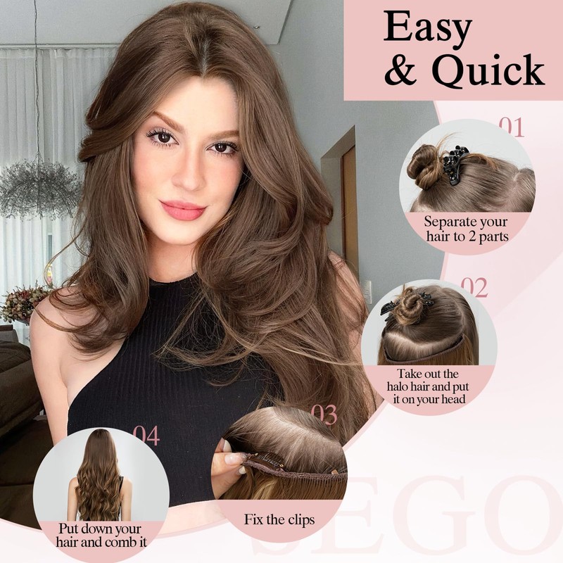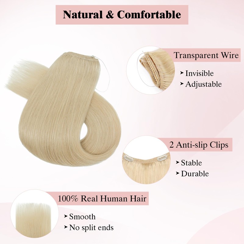 SEGO Invisible Wire Hair Extensions Real Human Hair Adjustable Wire with 2 Clips for Women Transparent Fish Line Extensions to Add Length,20inch Bleach Blonde,75g