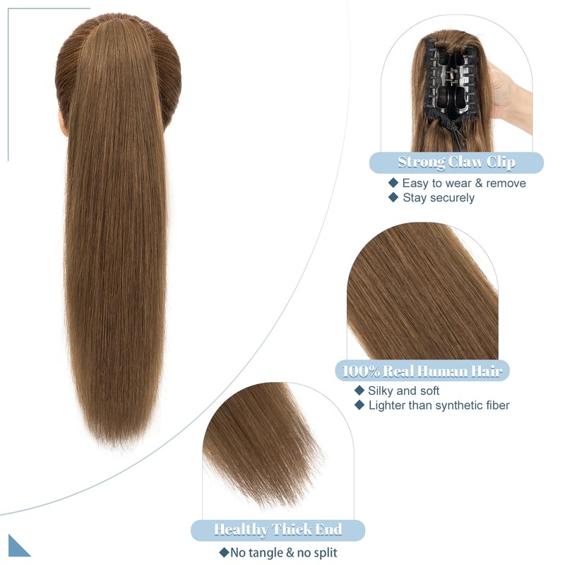 - 100% Remy hair quality: the ponytail looks very natural, smooth and has a silky shine, it can be cut and styled as desired.