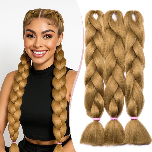 SEGO Pro Braiding Hair Extensions 24 Inch Synthetic Hair Box Jumbo Braid Hair for Crochet Twist Braids Hair Extensions for Women Braids Attachment Pack of 3 (Dark Blonde)