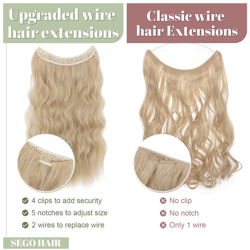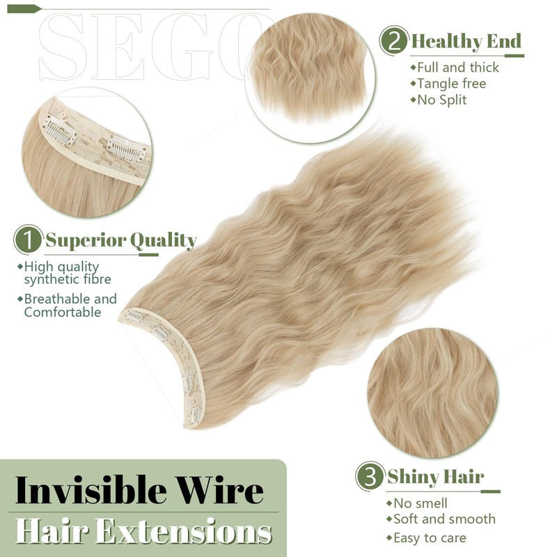- ️2024 upgrade extensions with invisible wire: Instead of classic seams or tapes, the SEGO Secrets hair extensions are attached with an invisible wire. This creates a natural look as there are no visible fasteners.