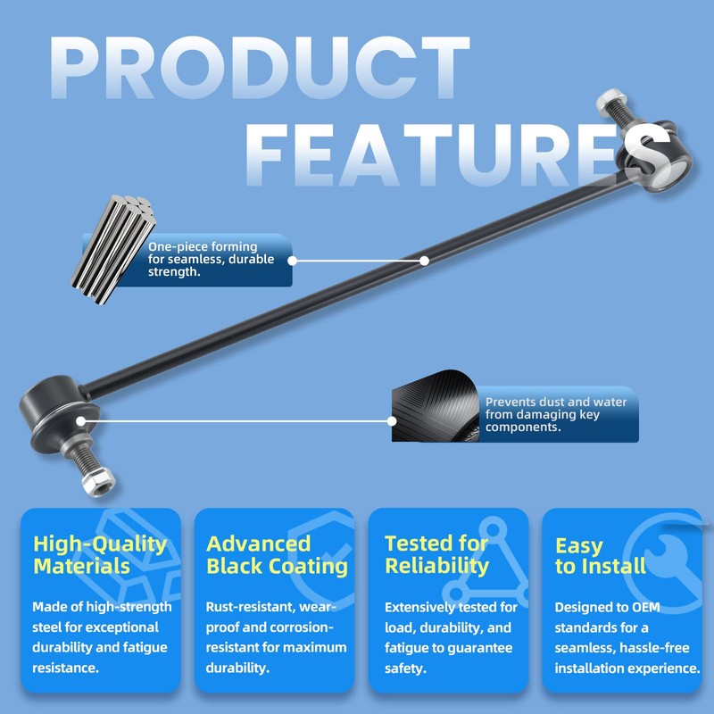 • 【Enhanced Comfort & Safety for a Superior Driving Experience】This stabilizer bar link is designed to enhance both comfort and safety. It effectively reduces body roll during turns and maneuvers, providing a more stable and controlled driving experience. The reduction in vibrations and jolts leads to a smoother ride and makes every journey more enjoyable and secure