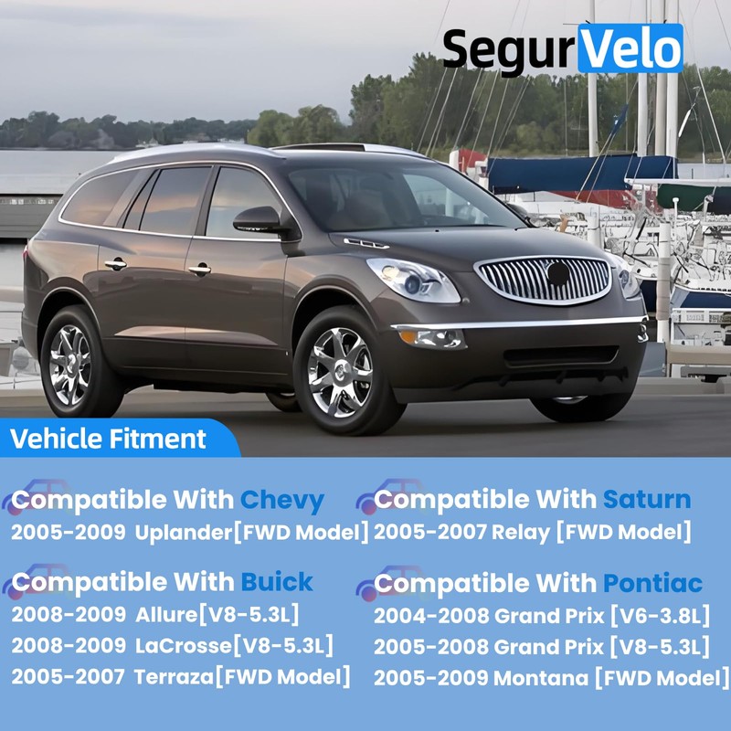 • 【Fitment Information】Compatible With Buick 2008-2009 Allure [For V8-5.3L], 2008-2009 LaCrosse [For V8-5.3L], 2005-2007 Terraza [For FWD Model], Compatible With Chevy 2005-2009 Uplander [For FWD Model], Compatible With Pontiac 2004-2008 Grand Prix [For V6-3.8L], 2005-2008 Grand Prix [For V8-5.3L], 2005-2009 Montana [For FWD Model], Compatible With Saturn 2005-2007 Relay [For FWD Model]