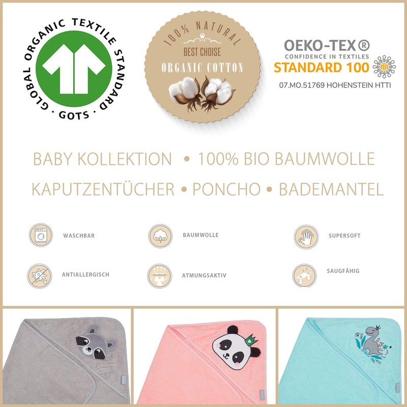 sei Design Your Organic Hooded Towel Made of 100% Organic Cotton for Babies, Hooded Towel for Newborns from 0+ Months to 5 Years 80 x 80 or 100 x 100 cm