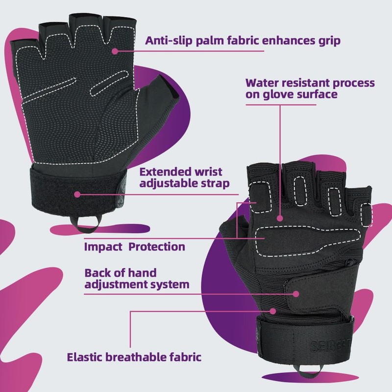 Seibertron S.O.L.A.G 1/2 Finger/Fingerless/Half Finger Multi-Function Sports Gloves Black S