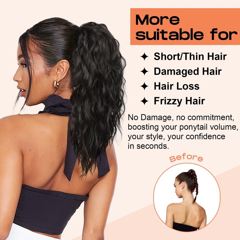 - Add Hair Volume and Length - Instantly increasing hair volume and length, glamorous new look without damaging your own hair. Say goodbye to expensive and time-consuming salon appointments, You can bring the clip in ponytail hair extensions in or out anytime you want