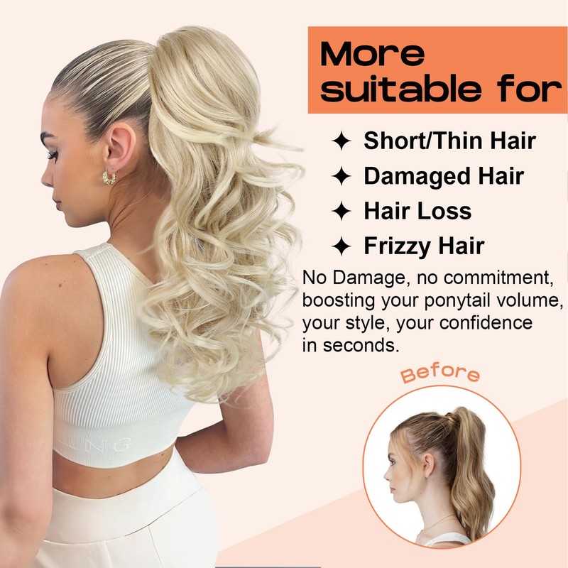 - Add Hair Volume & No Damage to Natural Hair - Instantly increasing hair volume, adding hair length, glamorous new look without damaging your own hair. Say goodbye to expensive and time-consuming salon appointments, You can bring the clip in ponytail hair extensions in or out anytime you want