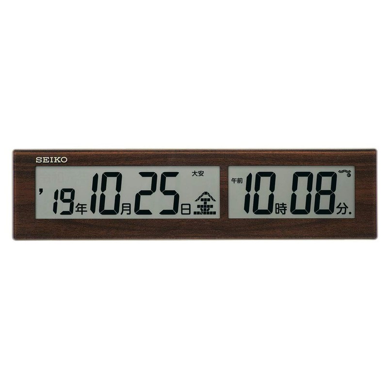 Seiko SQ441B Wall Clock, Table Clock, Radio Controlled, Digital, Original Display, Brown Wood Grain Pattern