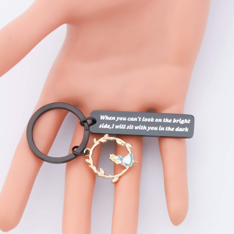 SEIRAA Gift Friendship Keychain When you Can't Look on the Bright Side I Will Sit With You in The Dark Alice Gift (Alice keychain) (Black Alice keychain)