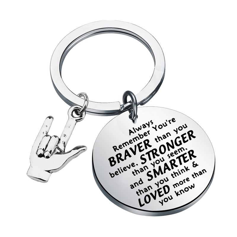 - ❥Size❥ASL key chain engraved- ‘‘‘Always remember you're BRAVER than you believe.STRONGER than you seem.and SMARTER than you think, and LOVED more than you know.’I love you ASL sign is about 2.5cm long,TIPS: Manual measuring permissible error.