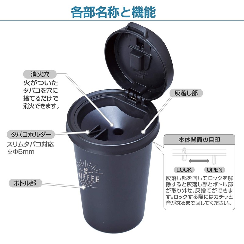 • Café Cup Ashtray: This is a stylish and cute cafe cup ashtray with a drink holder