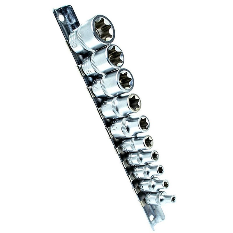 SEIWEI 10 Pcs E-Torx Socket Set with Matched Clip-on Storage Rail, External Torx Socket Set E4, E5, E6, E7, E8, E10, E12, E14, E16, E18 Socket Set
