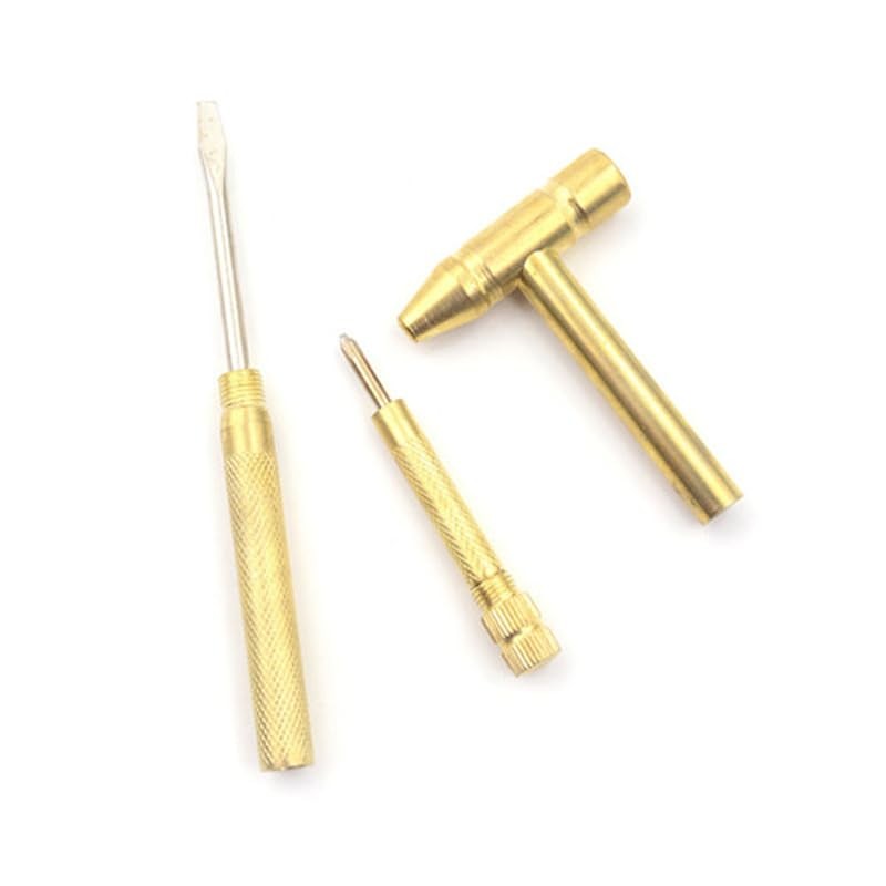 - The brass hammer has a textured anyi-slip handle that is easy to hold and turn the screwdriver