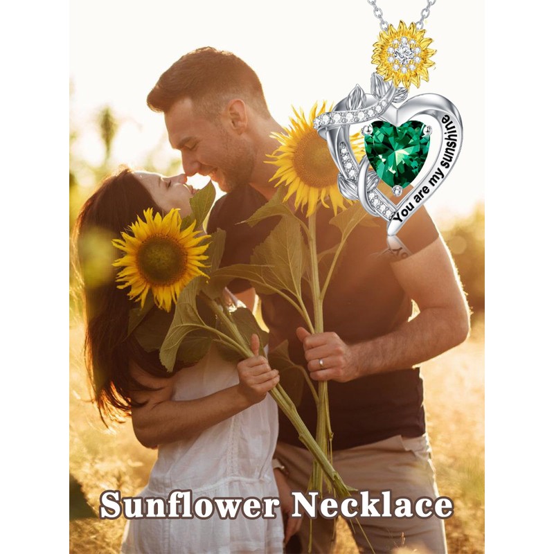 - May Heart Birthstone Necklace:Sunflower necklace is made from heart birthstones,Everyone has their own birthday month.Emerald is the May birthstone,represents love and life.Emerald is also the stone given to celebrate the 55th wedding anniversary