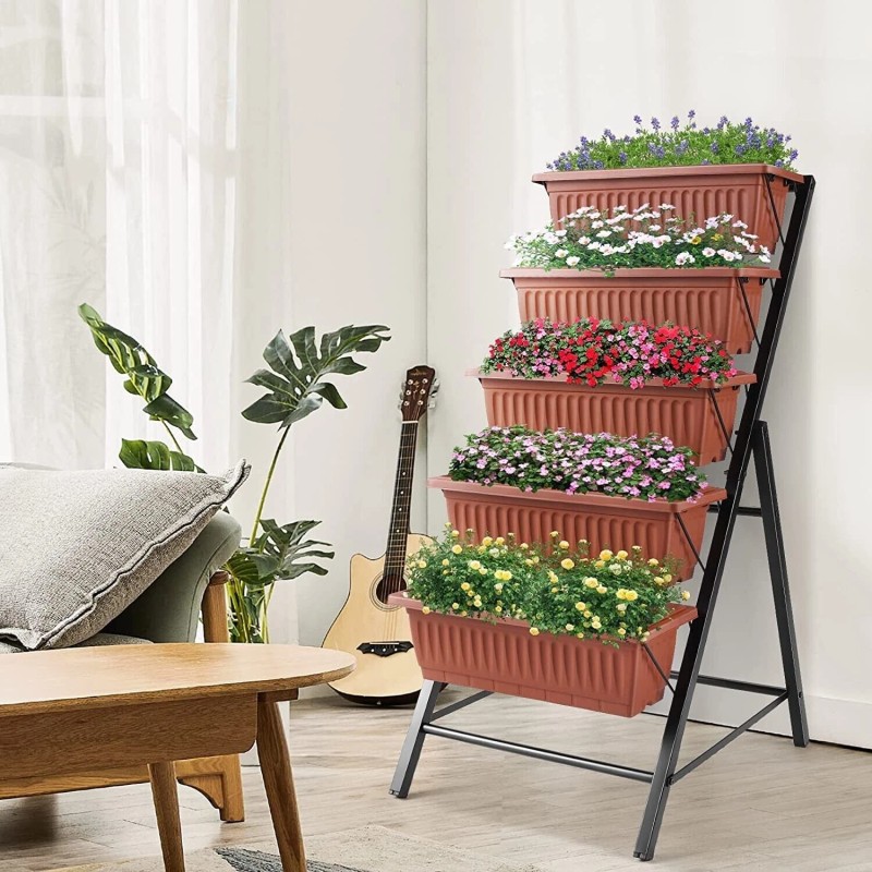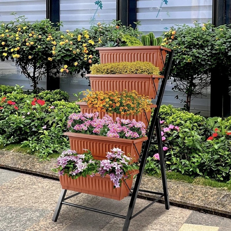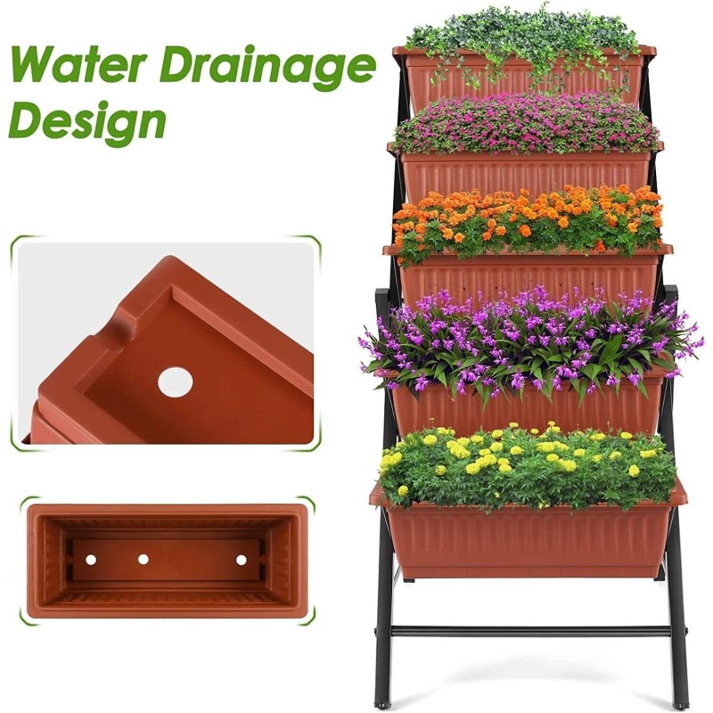 - đăSturdy & Durable MaterialsăThe overall design of the vertical raised garden bed uses a triangular stable structure, and the whole frame is made of rust-proof high-quality iron metal, weather resistant, which greatly guarantees the stability and durability of the entire garden bed. 5 planter boxes made of 100% new polypropylene material.