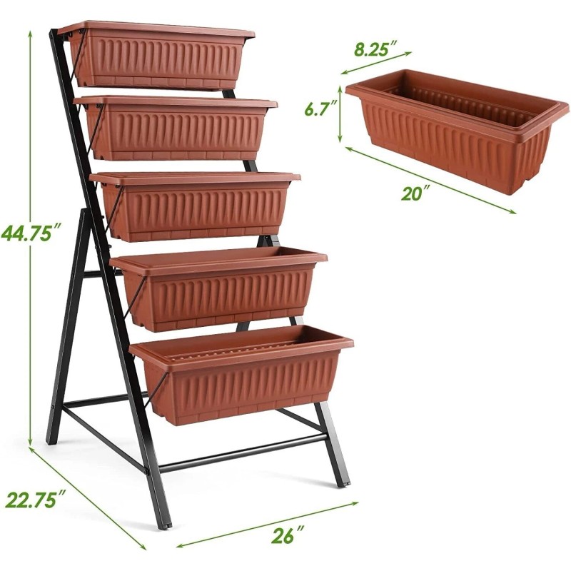 - đăDimensionă Freestanding vertical planter overall dimension 22.8*26.0*44.9inch, it has 5 planter boxes, the size of a single box is 20*8.25*6.7 inches.