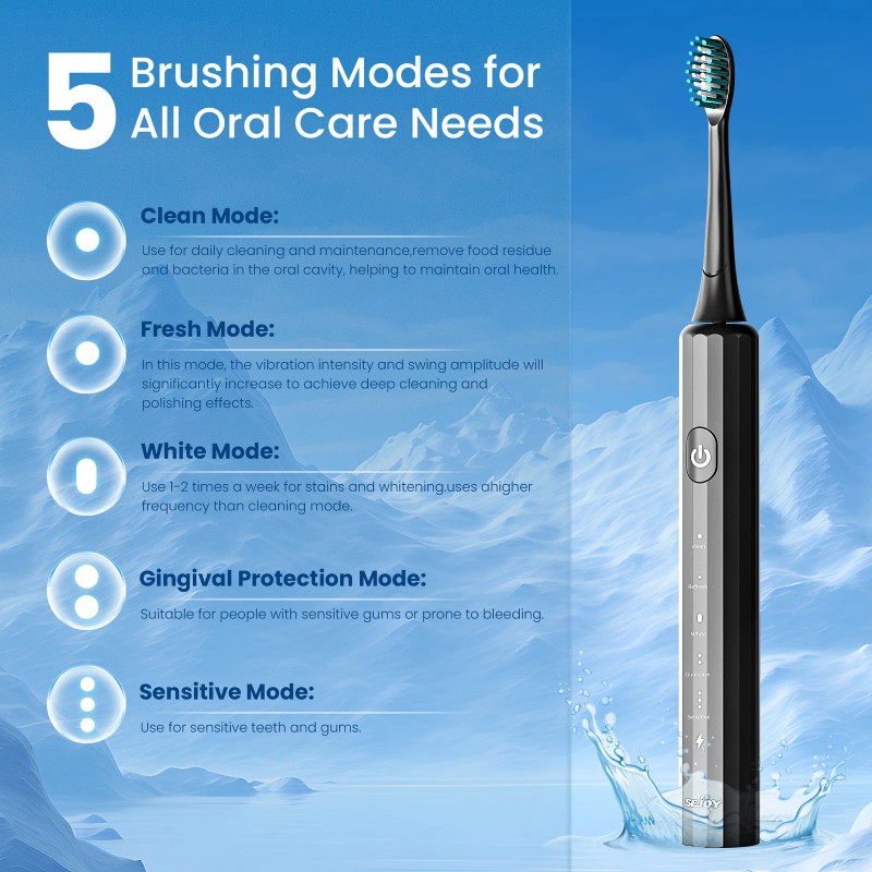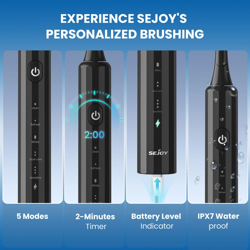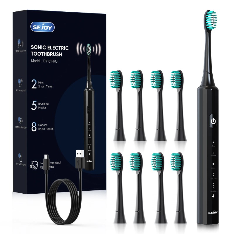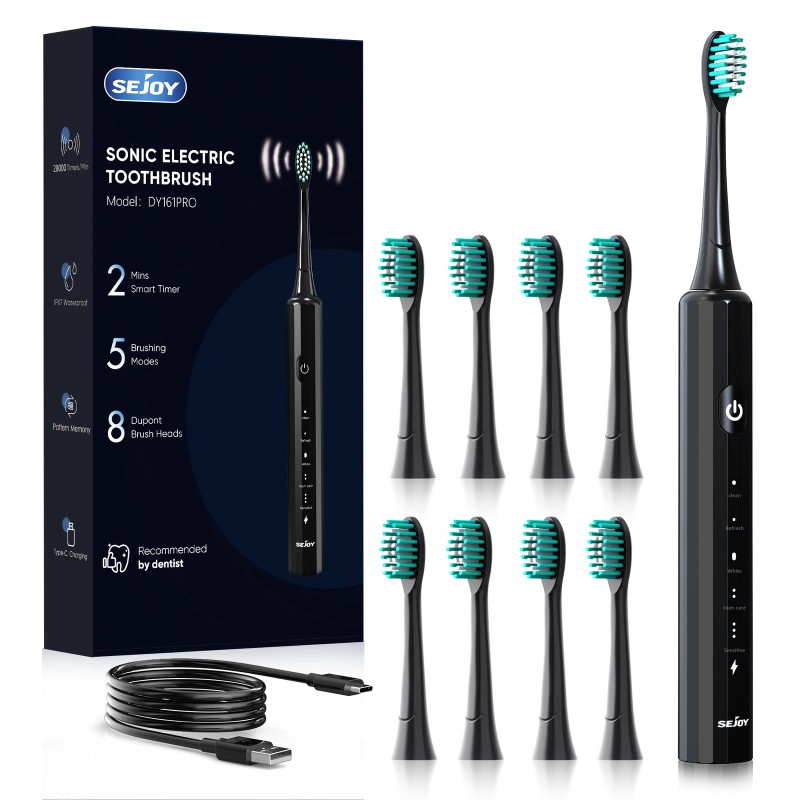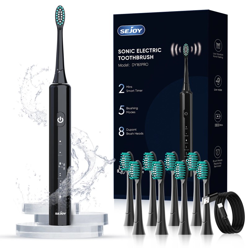 SEJOY Sonic Electric Toothbrush Rechargeable With 8 Brush Heads 5 Modes Timer