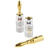- Set consists of 2 pieces 24K gold-plated banana plugs, simple polarity marking by colour printing (red or black)