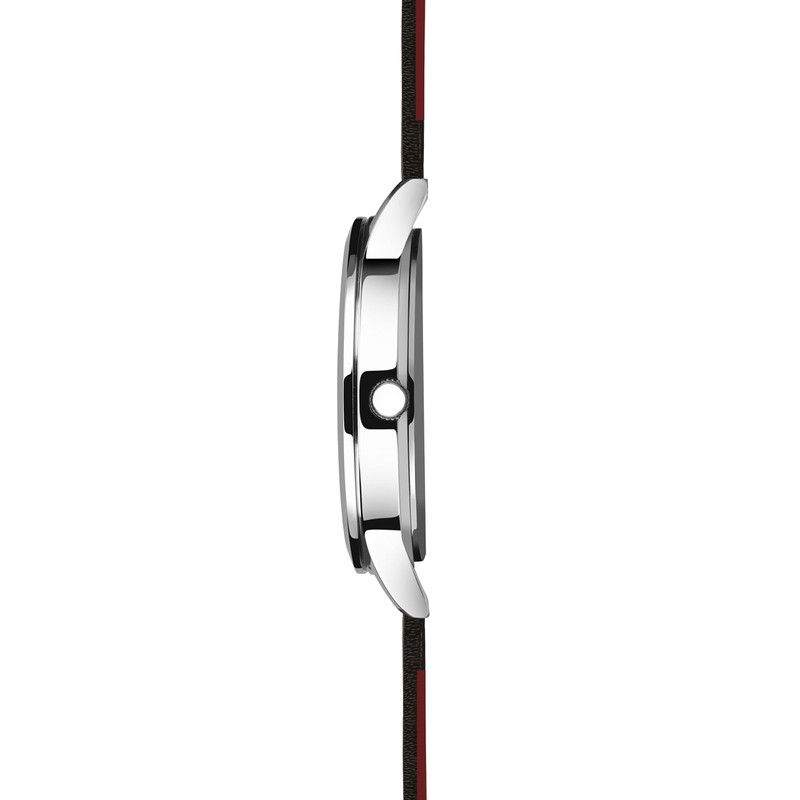 • QUALITY MATERIALS This watch has a black leather strap with a silver case; it has a white dial, date display and is water resistant up to 50 metres