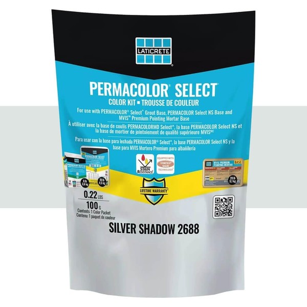 PERMACOLOR Select is an advanced high performance cement grout that offers the industry’s first dispensable dry pigment solution. PERMACOLOR Select is designed for virtually all types of residential and commercial installations and offers optimum performance on the most demanding exterior or interior applications. Easy to mix, grout and clean, PERMACOLOR Select is fast setting and is suitable for joints 1/16” to ½” (1.5mm–12mm) wide on floors or walls. Mixing Instructions 12.5 LB bag of PERMACOLOR Base(sold separately) - 1 Color Pack 25 LB bag of PERMACOLOR Base(sold separately) - 2 Color Packs
