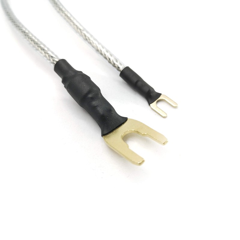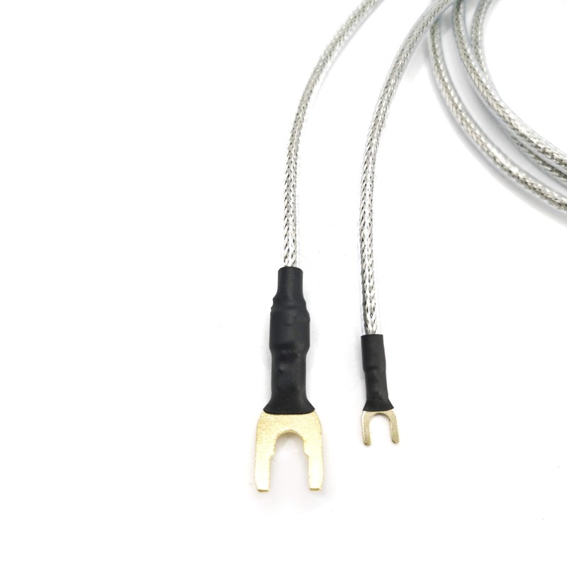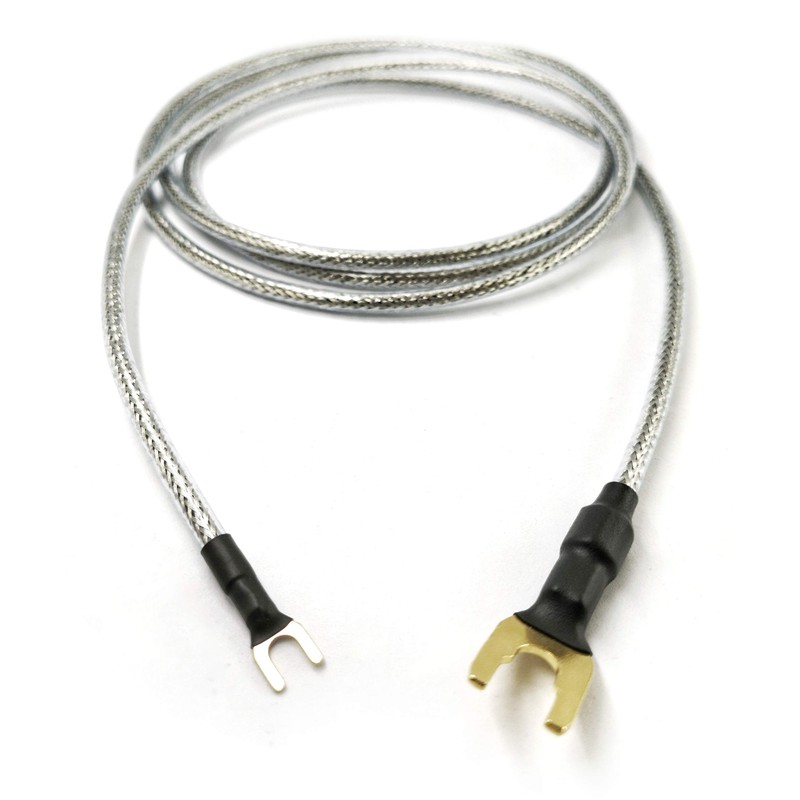 Selected Cable Phono Earthing Cable 2.5 m 1x 1.0 mm² for Turntable and Hi-Fi Devices with Ground Connection Gold-Plated Fork Shoes Transparent Silver Braided Shield