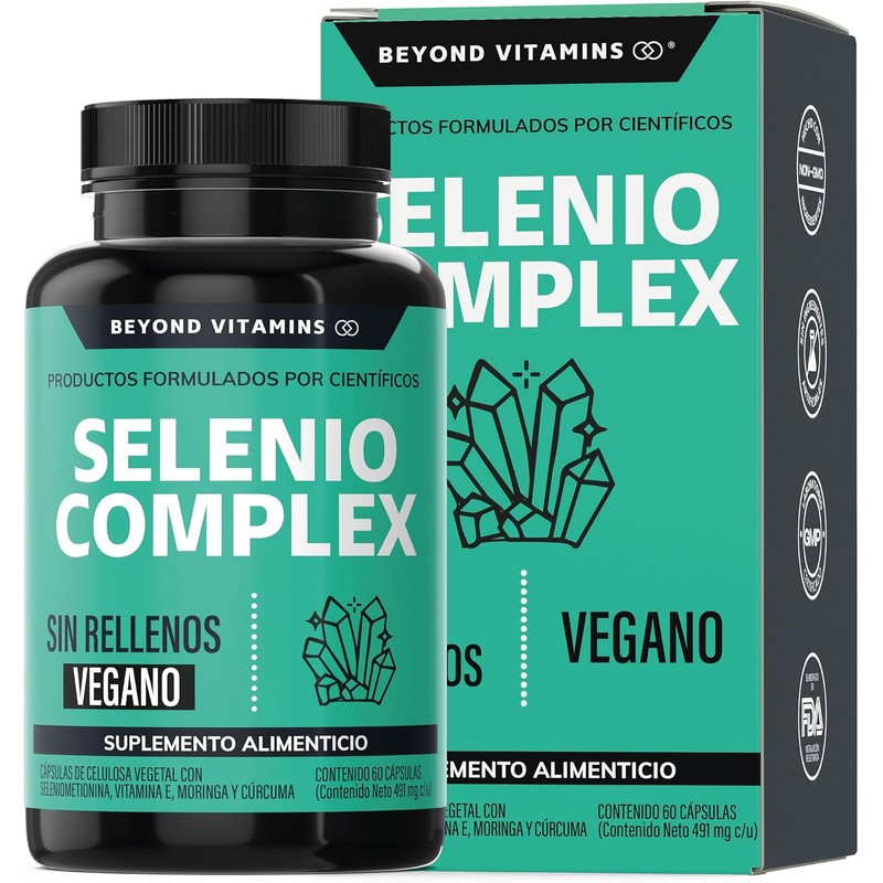 - ☝️SELENIO PREMIUM / VEGANO: Cada cápsula de SELENIO COMPLEX contiene una combinación de Seleniometionina, Vitamina E, Hoja de Moringa y Raiz de Curcuma.Sin rellenos. Vegano