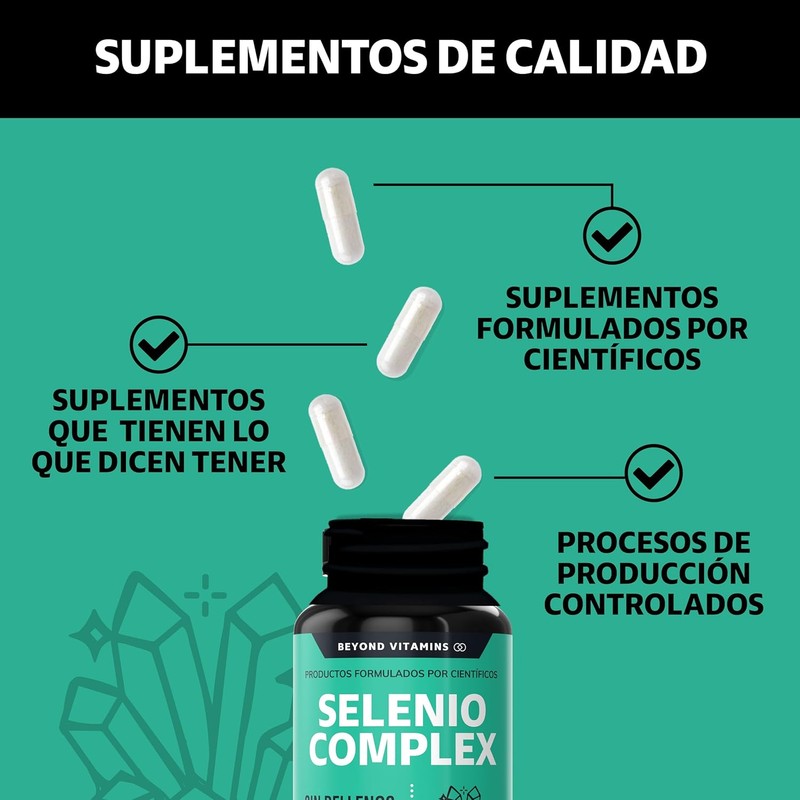- ❌ ESTE PRODUCTO NO CONTIENE: El suplemento SELENIO COMPLEX es elaborado SIN RELLENOS, SIN AZÚCAR, SIN EDULCORANTES, SIN INGREDIENTES ARTIFICIALES, SIN COLORANTES Y SIN SABORIZANTES ARTIFICIALES. Es un producto NON GMO (no modificado genéticamente). ES VEGANO.