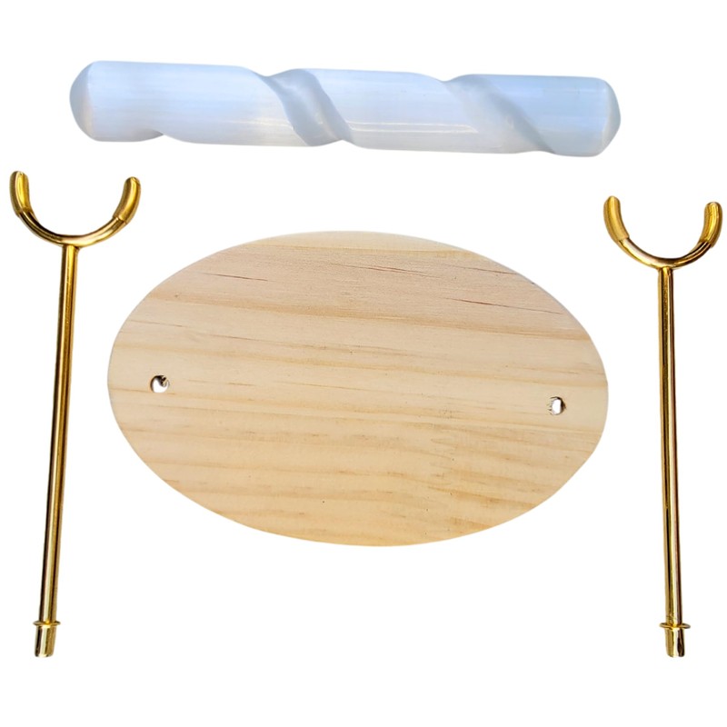 - CRYSTAL BRACELET DISPLAY STAND (*Bracelets not included): This 6" spiral selenite bracelet holder stand is hand-carved in Morocco and showcased with choice of Gold or Black Stand w/ Rectangle Wood Base: 5.25W"x2D"; Choice of size 4"H or 6"H. Also, in Gold & Silver Oval Wood Base: 5.5"W x 3.5"D with 4"H size. Both styles gently hold our 6 inch beautiful hand-crafted selenite wand. Our bracelet stand comes in 4 pieces that easily assembles.