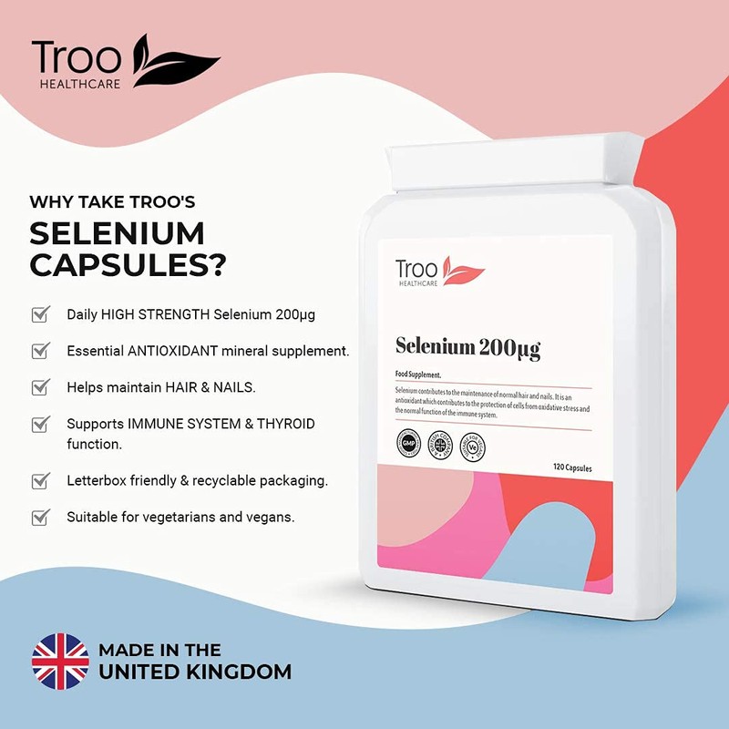 - DAILY - high strength Selenium 200µg 120 Capsules providing a convenient daily serving of this essential antioxidant mineral supplement.