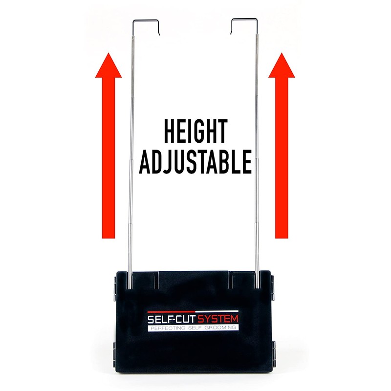 • VERSATILE. The Self-Cut System's telescoping brackets come right out of the unit and hook onto any door, making for instant height adjustment for the perfect self-grooming experience