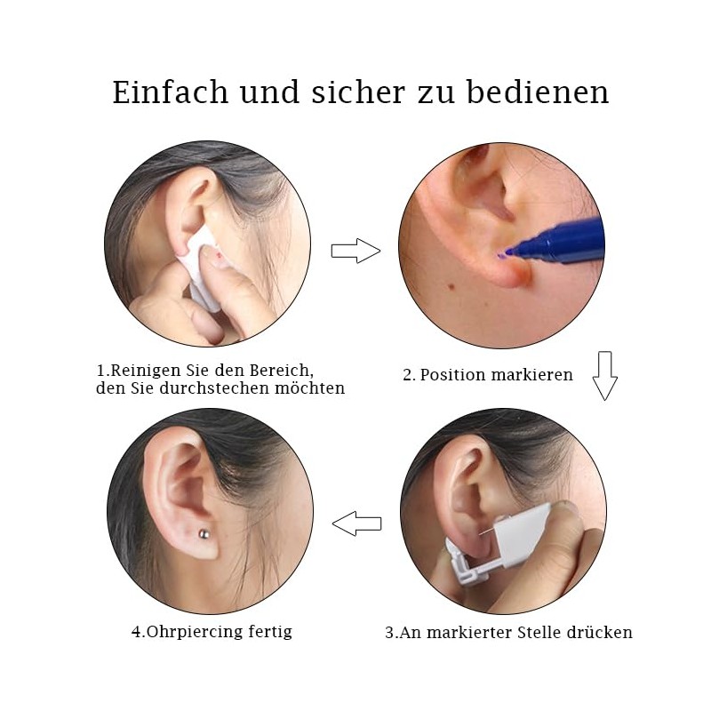 - 【Easy to Use】Clean your earlobe with the provided alcohol swabs, mark a position on your earlobe, simply align the position and press down the ear piercing gun, then finish the process.