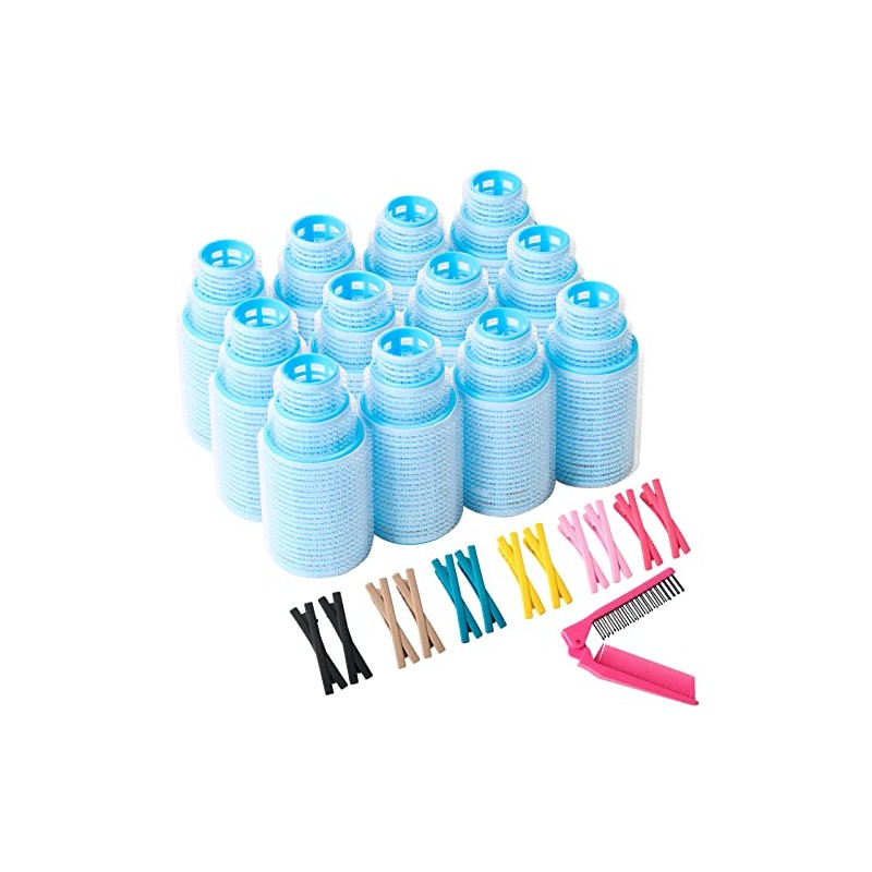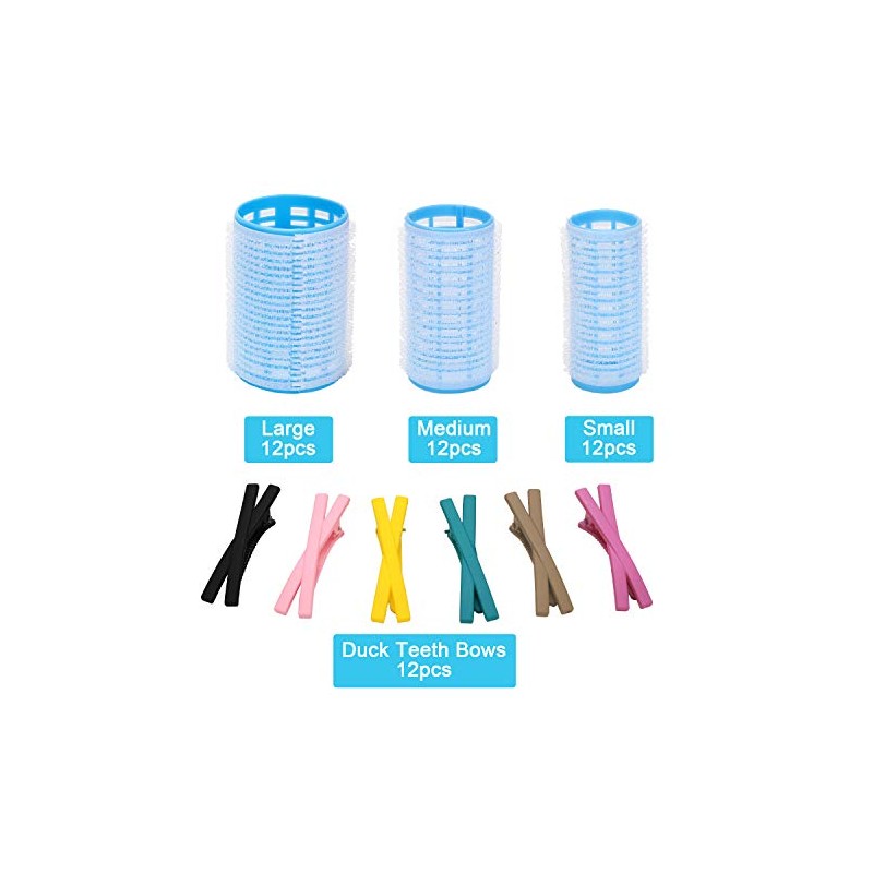 **Item Type:** Hair Rollers Set **Hair Rollers:** The material of hair roller is plastic. 3 different sizes of small, medium and large. The diameter of S is approx. 0.98 inches / 25 mm. The diameter of M is approx. 1.18 inches / 30 mm. The diameter of L is approx. 1.49 inches / 38 mm. The length of S / M / L is approx. 2.44 inches / 62 mm. **Duckbill Clips:** The material of duckbill clip is acrylic. The size of clip is approx. 2.63 x 0.59 inches. **Folding Plastic Comb:** The material of comb is plastic. The size of comb is approx. 8.34 x 0.9 inches. **How to use hair rollers?** 1\. Blow-dry your hair about 80% to 90% after washing (or spray little water on dry hair). 2\. Put the curlers in, then use duckbill clips (if necessary). 3\. Use hairdryer to blow-dry hair completely. 4\. Take the curlers out after several minutes (it's up to you). To get the volume and nice shape you want, just use a little bit of hairspray or other styling products. **Package Included:** 12 x Large Hair Rollers 12 x Medium Hair Rollers 12 x Small Hair Rollers 12 x Acrylic Duckbill Clips 1 x Folding Plastic Comb