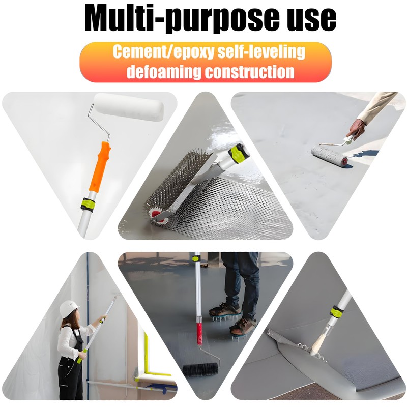 - Safe and reliable: The anti-slip design of the spikes ensures the safety of construction workers; the spike roller eliminates bubbles and improves the quality of the floor.