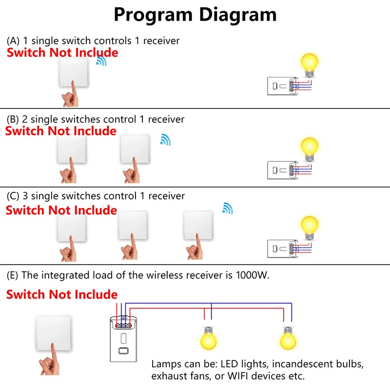 - ⚠️【 KINDLY NOTE】- Exclusive Compatibility: Only ECO-NEWLEAF master wireless switch panels are designed to efficiently control multiple receivers. Please be aware that ordinary wireless switch panels may not function properly when used with multiple receivers.