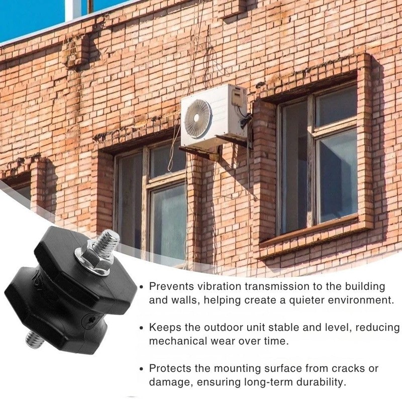Transform your air conditioning installation with these premium hexagonal rubber shock absorber mounting brackets. This set of 4 anti-vibration pads effectively minimises noise transmission and mechanical vibrations from your outdoor AC unit to the building structure. Each pad features a robust design with high temperature and impact resistance, ensuring long-lasting performance in various weather conditions. The hexagonal shape provides excellent load-bearing capacity while maintaining stability for your condenser unit. These mounting brackets not only help create a quieter environment but also protect your walls from potential damage caused by continuous vibrations. The pads measure 35x2 centimetres and come with secure mounting hardware. Perfect for both residential and commercial air conditioning installations, these shock absorbers help extend the lifespan of your AC unit by reducing mechanical wear through proper stabilisation and levelling. The black rubber construction offers superior durability and reliable performance throughout the seasons.