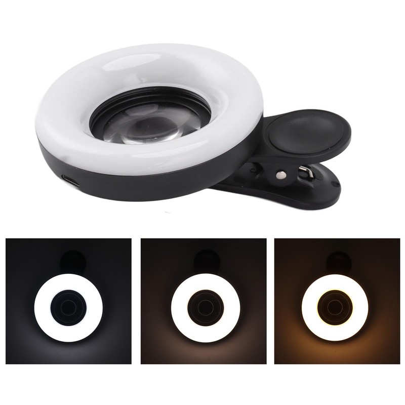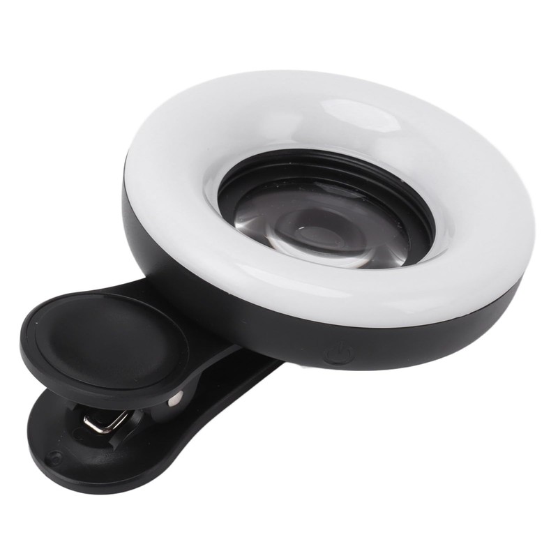 Selfie Light, Portable Mini Clip On Light with 15X Macro Lens 2800 to 6500K Dimmable Rechargeable Selfie Fill Light for Smart Phone Photography Video Vlogging (Black)
