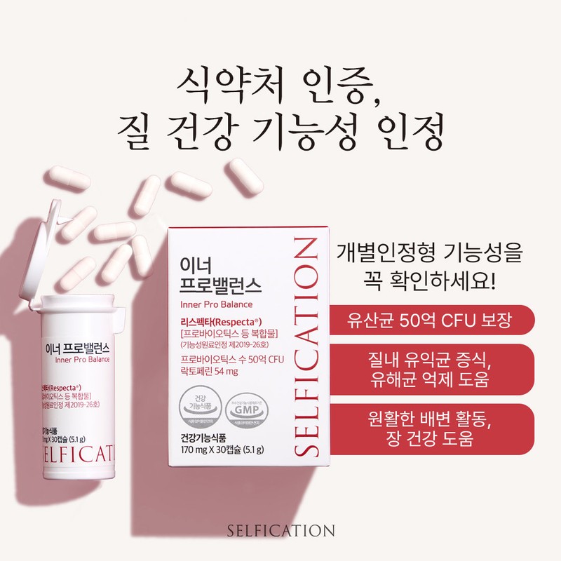Selfification Vaginal Health Lactobacillus Inner Pro Balance 1 Month (1BOX) / 셀피케이션 질 건강 유산균 이너프로밸런스 1개월(1BOX)