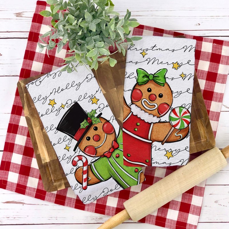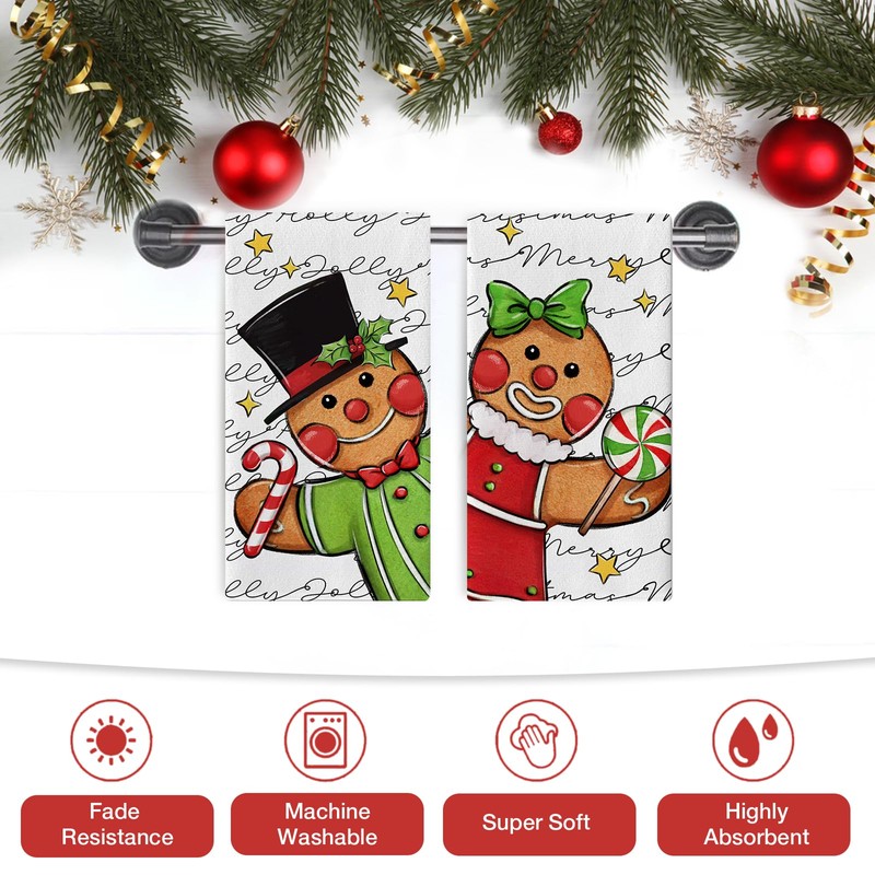 Seliem Merry Christmas Gingerbread Man Kitchen Dish Towels Set of 2, Xmas Pep...
