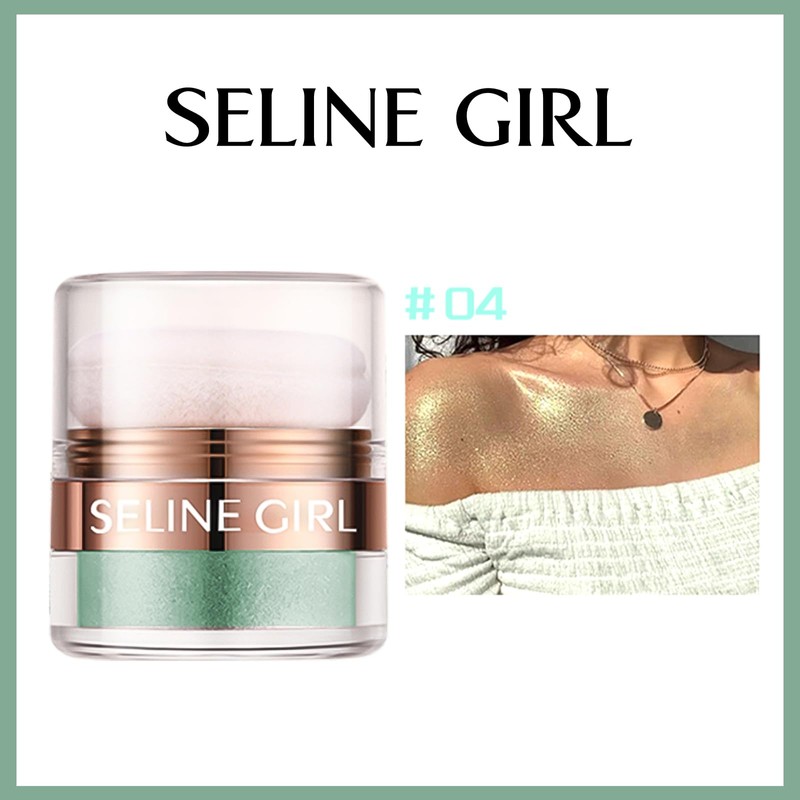 SELINE GIRL ボディハイライター 4色 微細パールパウダー 耐水耐汗 マルチユース スポンジ付属 顔・ボディ用 自然立体感 毛穴目立ちカバー 軽量テクスチャー #04あおみどり