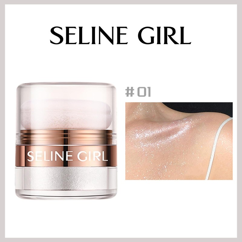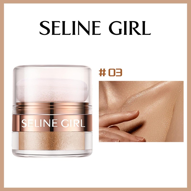 SELINE GIRL ボディハイライター 4色 微細パールパウダー 耐水耐汗 マルチユース スポンジ付属 顔・ボディ用 自然立体感 毛穴目立ちカバー 軽...
