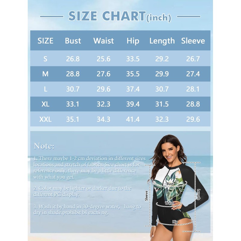 - ♥Zipper Closure--- Surfing suits have stretch fabric, add comfort in swim sports. Rash Guard surfing suit relaxed with zipper on the chest for easy opening and closure, make dressing more convenient.