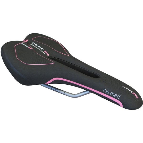- R.e.med has three zones that can be redistributed pressure to suit rider's podition. Memory foam embedded into the active zone of the saddle tip and pelvis support zones to absorb impact. It also features a hole in the saddle center and a groove called the recovery zone to provide a pain-free and comfortable ride.