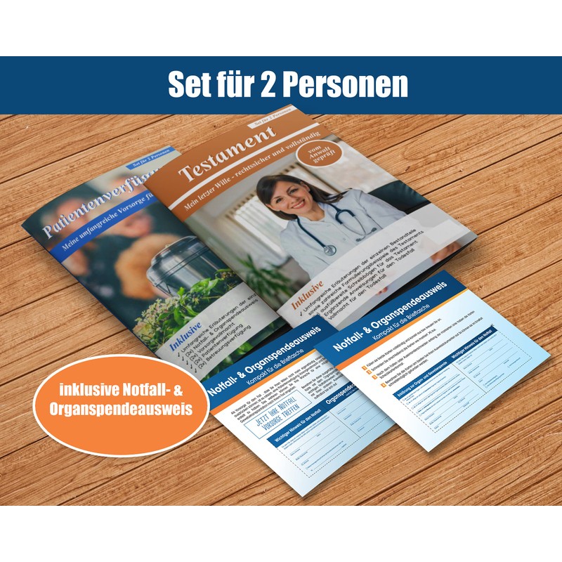 - ✅ KOMPLETTSET FÜR 2 PERSONEN - 2x Patientenverfügung, 2x Vorsorgevollmacht, 2x Betreuungsverfügung, 2x Testament, u.v.m.