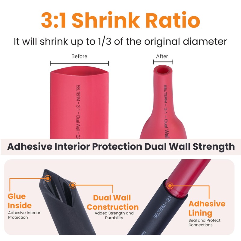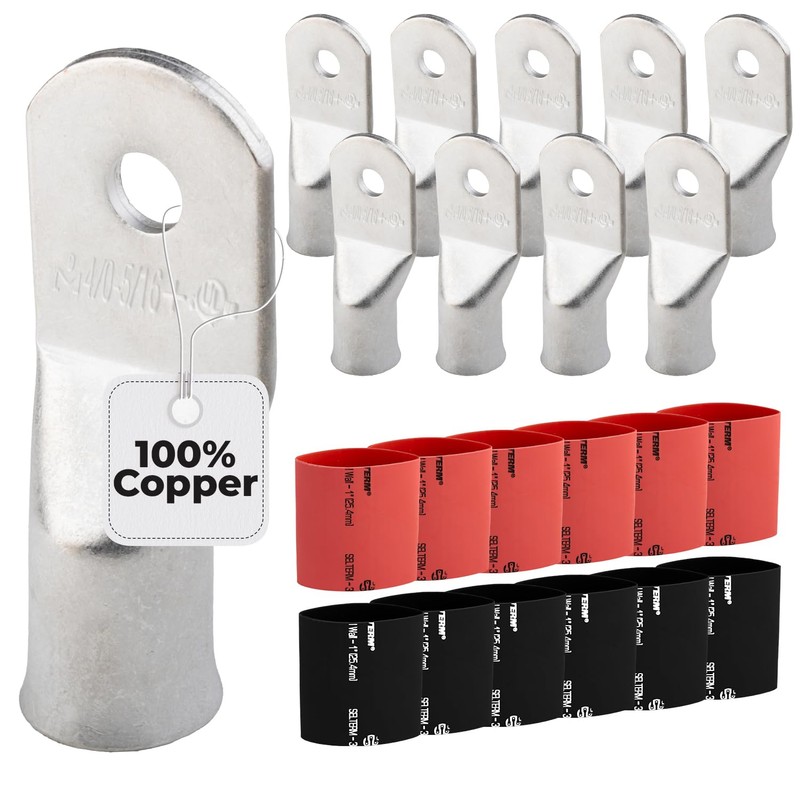 - Heat-Resistant Durability: The Selterm Copper Lugs Kit comes with 12pcs 3:1 Black & Red Heat Shrink Tubing with Adhesive. This tubing offers excellent insulation, protecting connections from heat, moisture, and corrosion, thus extending the life of your battery setup.