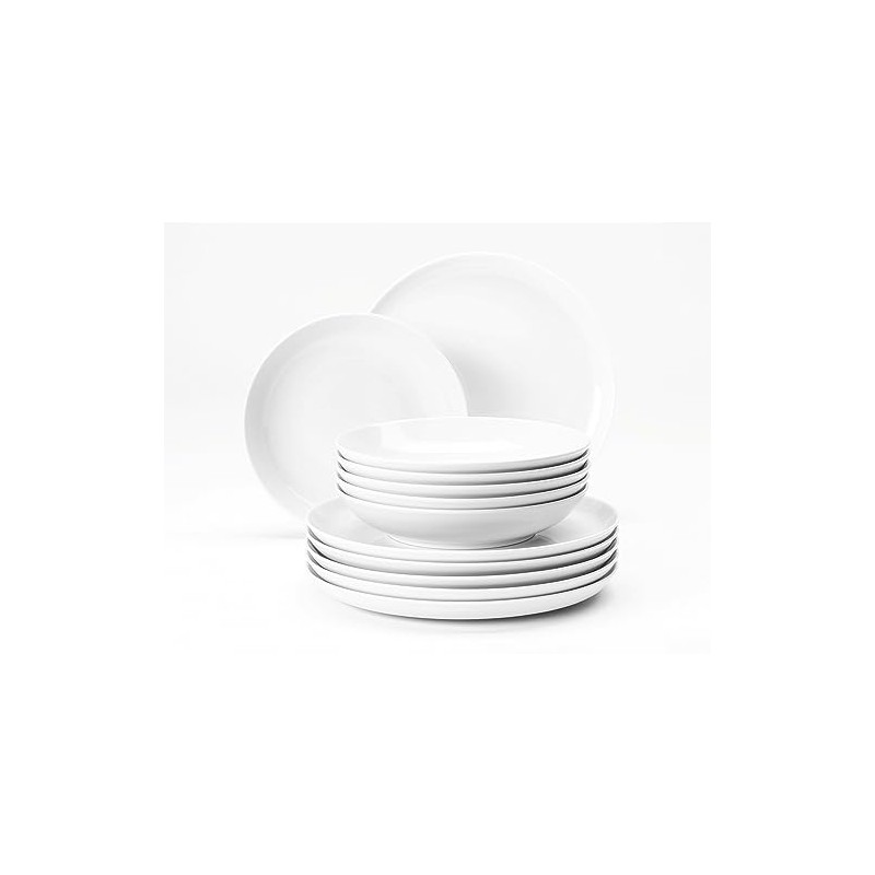 Seltmann Weiden 12 Piece Dinner Service | Lido Plain | 6 Dinner Plates, 6 Soup Plates, White