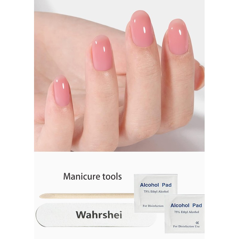 Semi Cured Gel Nail Strips, Jelly Carol Pink 20pcs Adhesive UV Sticker, Wraps for Home Manicure DIY