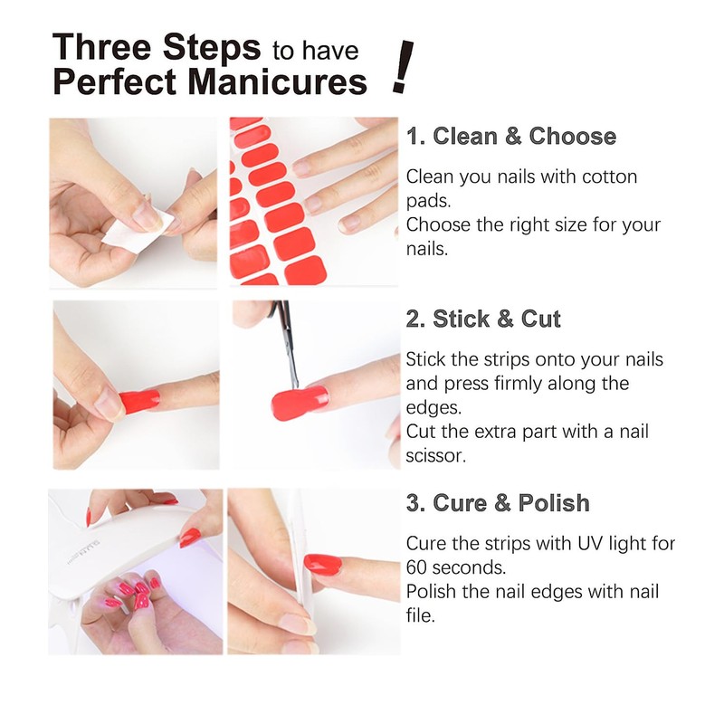 - 【Adhesive Gel Polish Sticker】 New style semi cured gel nail strips are not ordinary plastic nail stickers, they made of 100% gel polish ingredients, which are more shiny after curing by light.