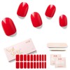 Semi Cured Gel Nail Strips - NAILOG 20 Pcs Red Nail Stickers Extra Long Wraps with Glossy Gel Finishing for Autumn Winter, Carmen