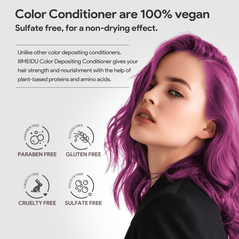 - Easy to Use: IIIMEIDU daily conditioner instead of your regular conditioner. Apply it to wet hair, let it set for 3-15 minutes, depending on the intensity of color you are looking for, then rinse thoroughly until the water runs clear. Reapply whenever hair feels dry or needs a surge of extra color.