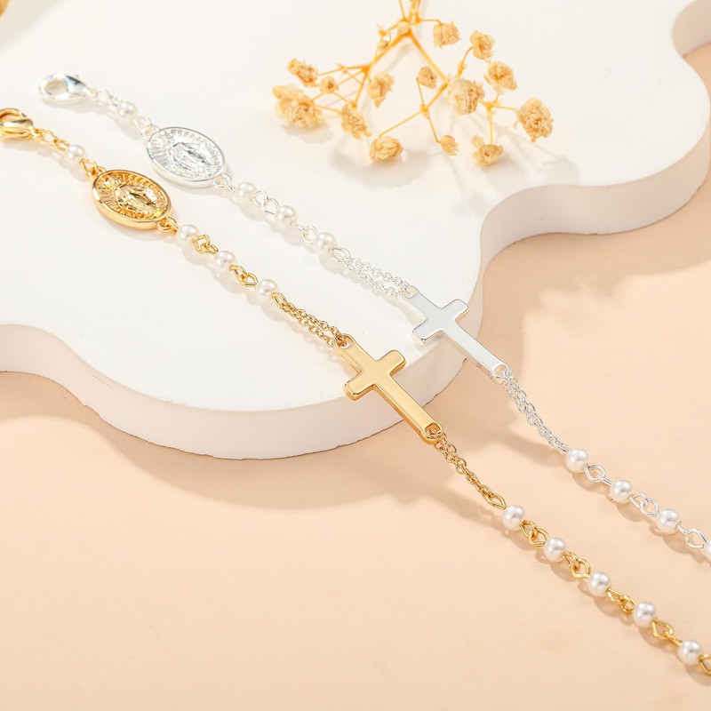 - [Material] The catholic bracelet is made of brass with gold plated, and select full-grained glass pearls, no stimulation to the skin and comfortable to wear.